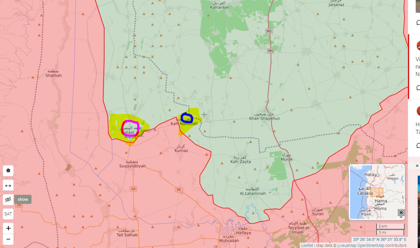 SAA+ ovláda Tal Hawash, Tal al-Sakhr a jeho farmy a mesto Al-Tuwainah a Shariah, severozápadne od Hama.