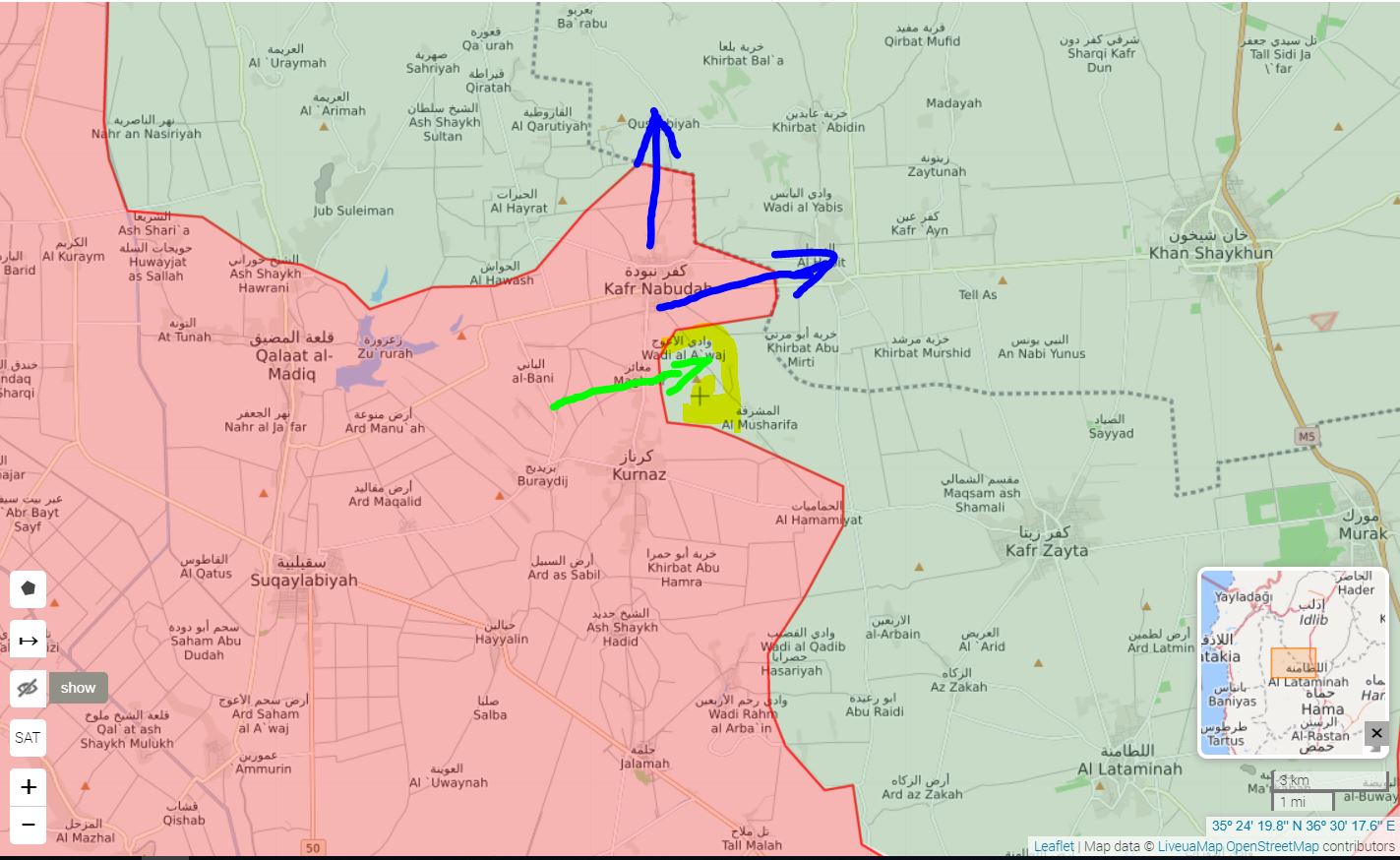 Po úspešnom útoku sýrskej arabskej armády (SAA) na mesto Kafr Nabudah, jednotky SAA pokračovali v rozvoji ich postupu v severozápadnej Hama. Podľa pro-vládneho zdroja, SAA zabezpečila Kafr Nabudah a tlačí sa k neďalekej dedine Habit. Podľa miestnych zdrojov prebiehajú konflikty na východ od neho.