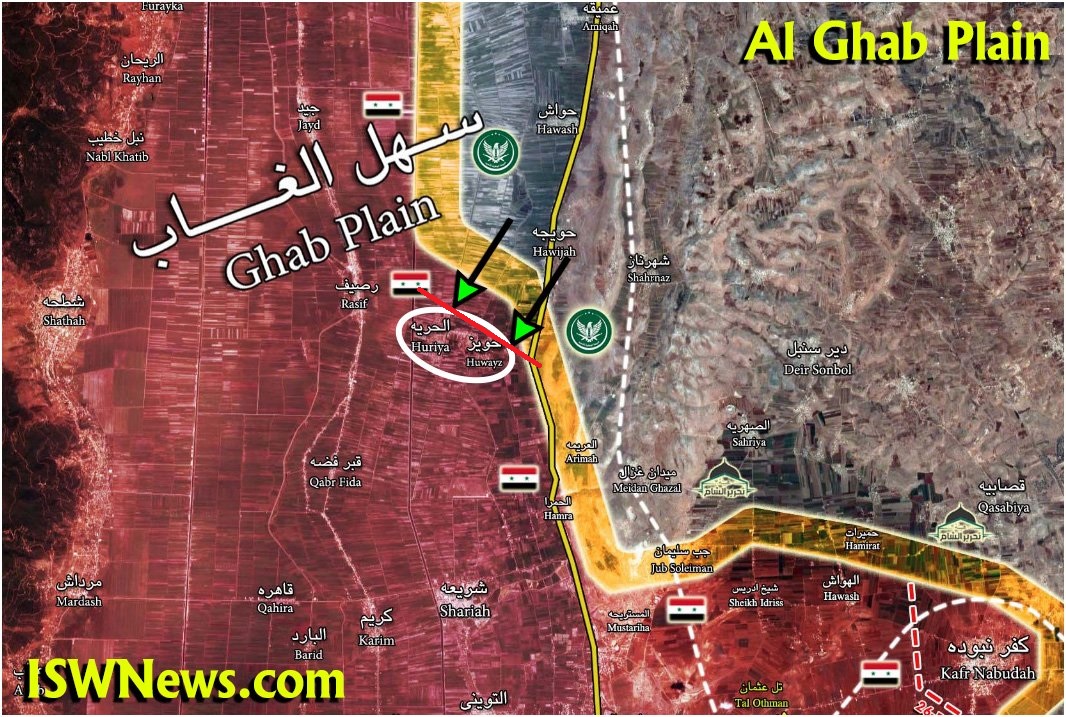 Sýrska arabská armáda (SAA) odrazila veľký útok Hay'at Tahrir al-Sham (HTS) a jeho tureckých spojencov na svoje pozície v meste al-Hwaiz v severozápadnej Hama.