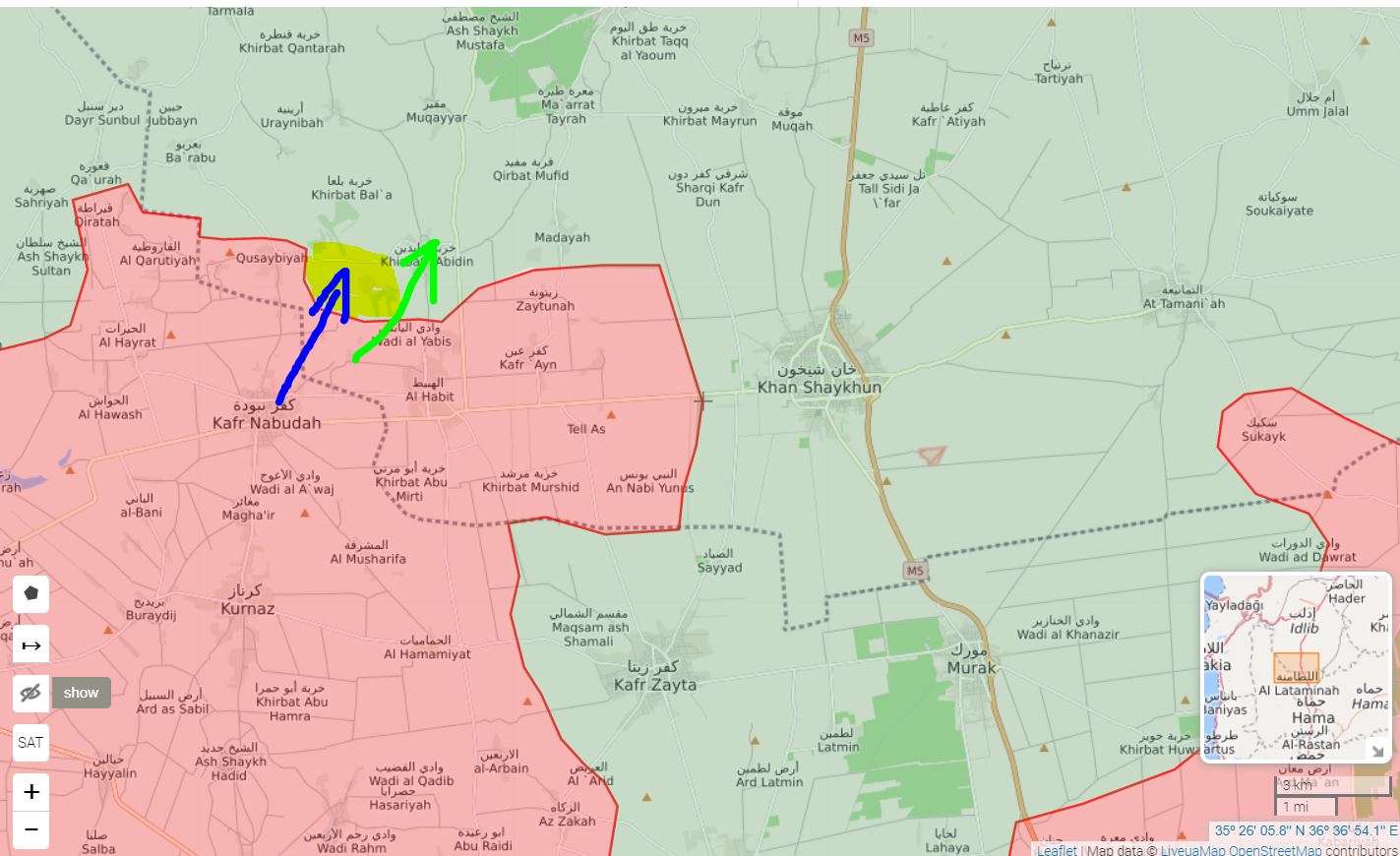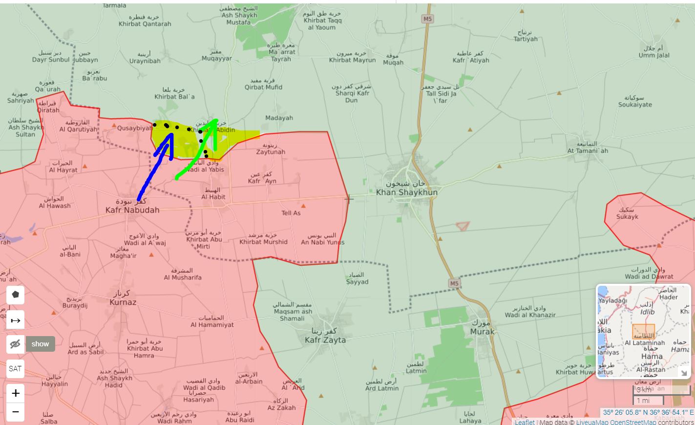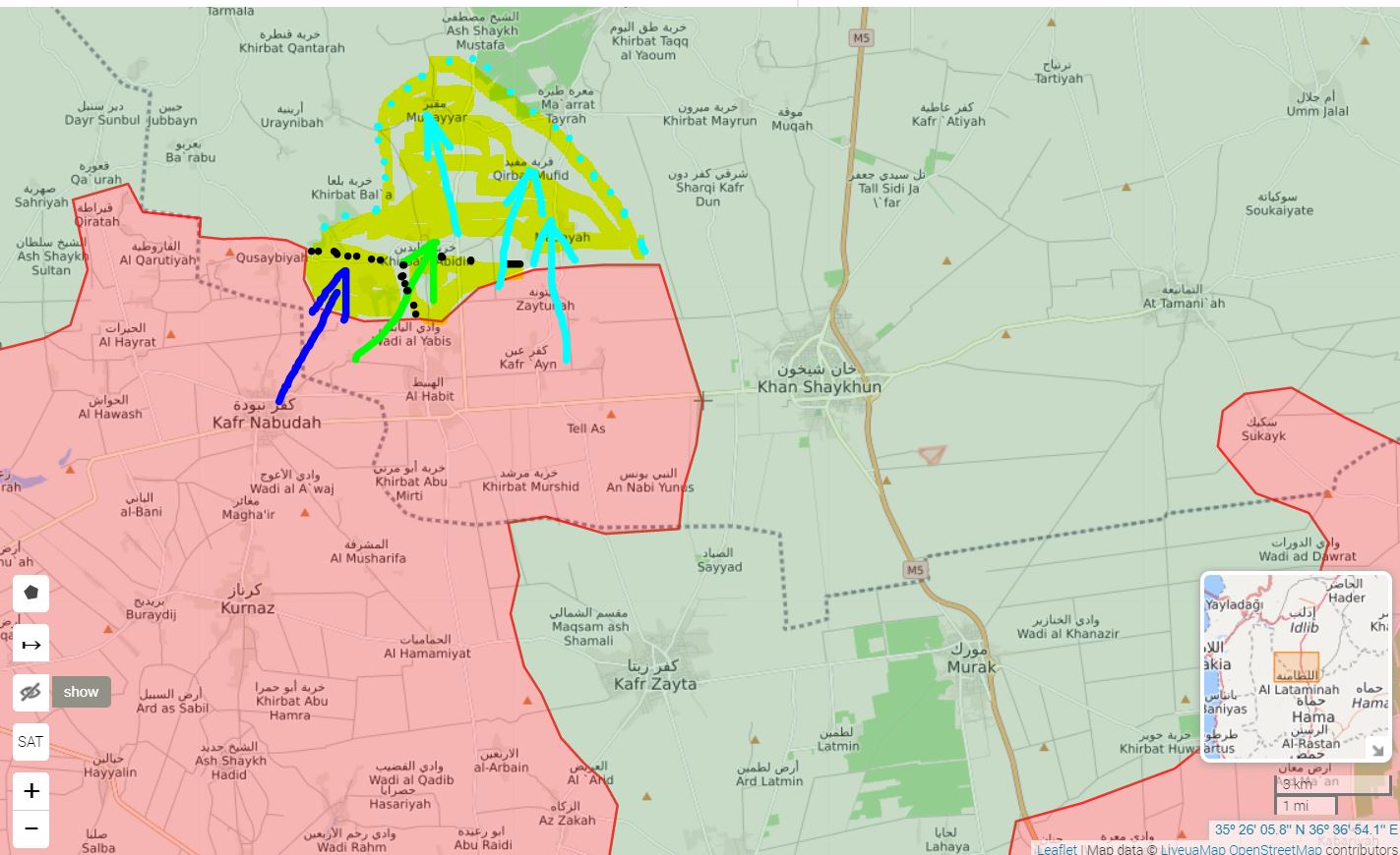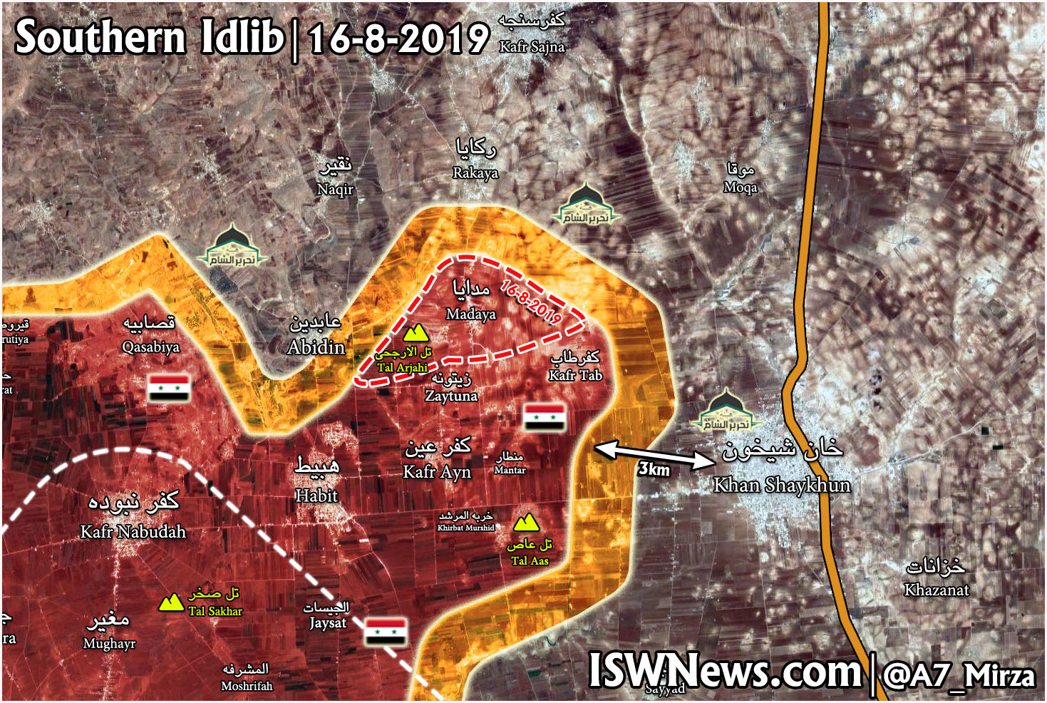 V posledních 48 hodinách obsadila SAA vesnice Kafr Ayn, Tall Aas, Khirbat Murshid, Mantar, Umm Zaytunah a Kafr Tab západně od Khan Shaykhun.