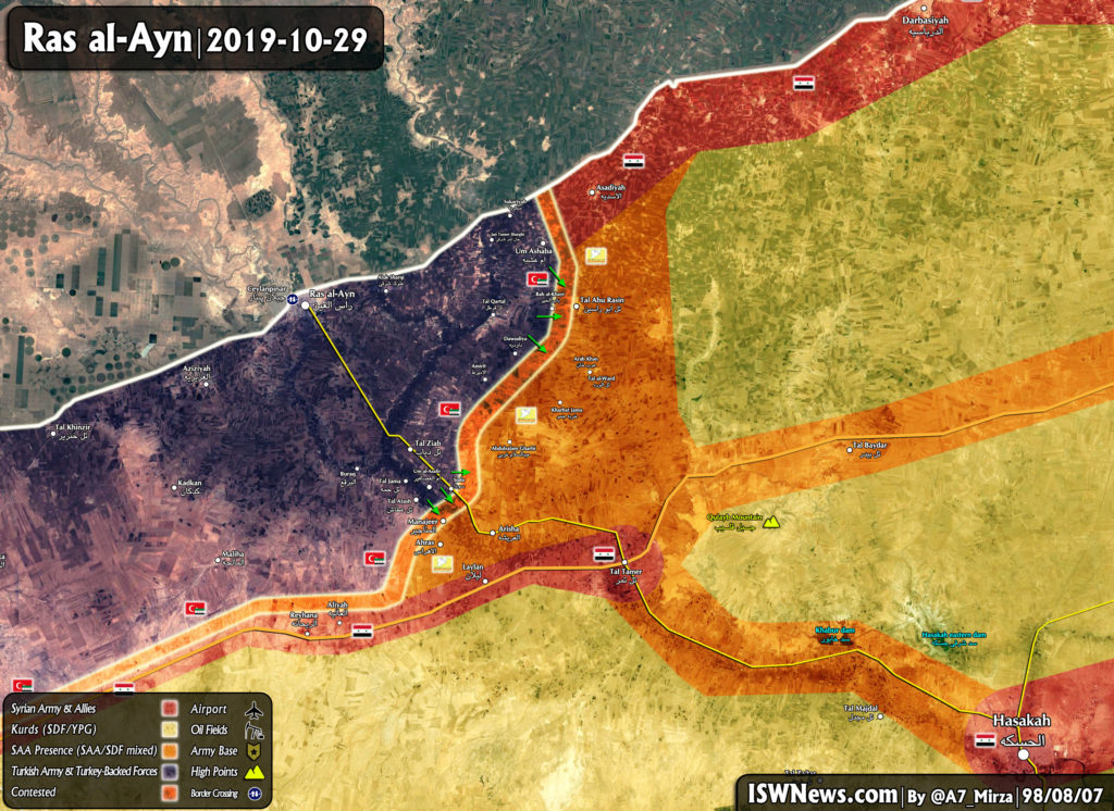 Po sérii střetů poblíž Ras al-Ayn se turecké síly pokusily rozšířit svou zónu kontroly jihovýchodně od města.