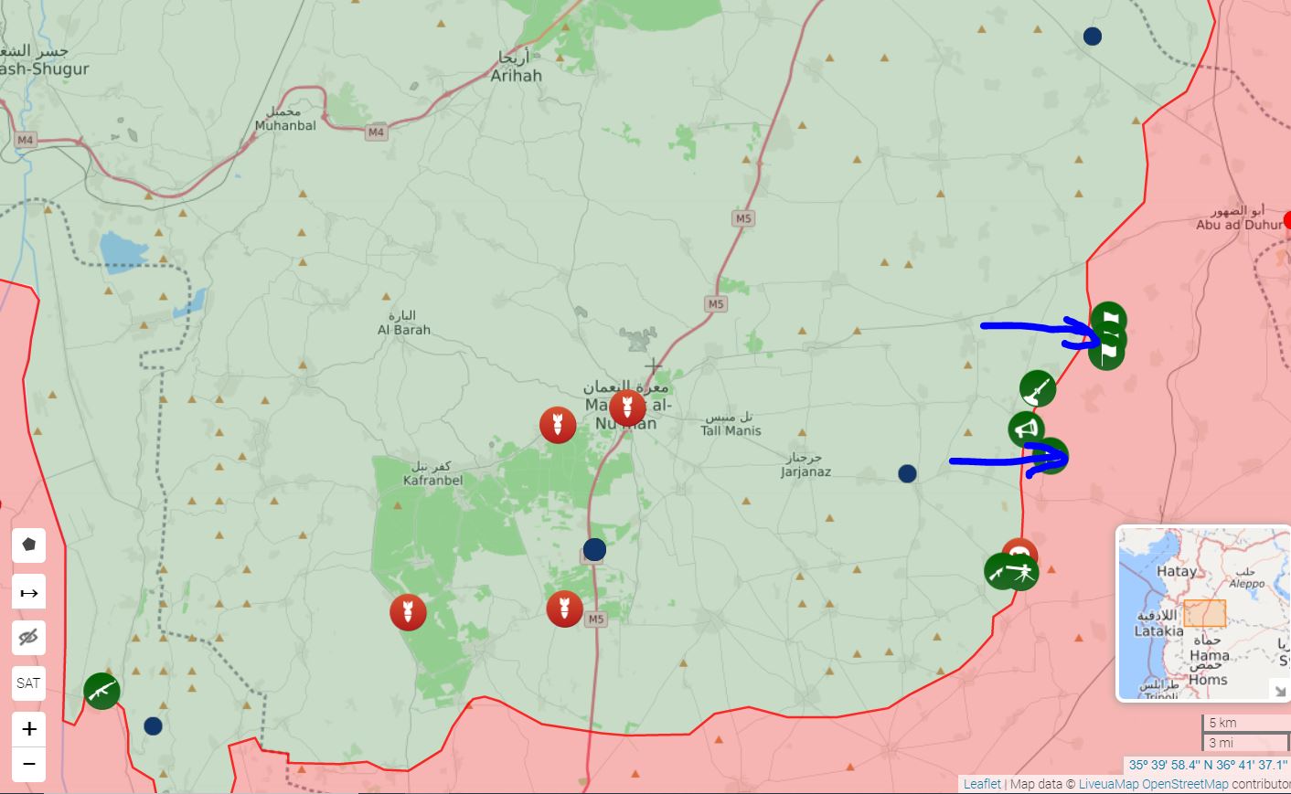 Dopoledne 1. prosince zahájila Syrská arabská armáda (SAA) protiútok v jihovýchodním Idlibu aby znovu získala obce která ztratila při nedávném útoku teroristů v tomto regionu. Armáda pod silným syrským a ruským leteckým úderem zachytila město Ejaz a několik pozic na jeho okraji od Hay-at Tahrira al-Šáma (HTS) spojeného s al-Káidou a jeho tureckými spojenci. O den dříve obsadila koalice HTS, tureckých skupin a frakcí přidružených k Al-Kádě, Ejaz a blízká sídla Sarjah, Rasm al-Ward a Istablat. Osud Sarjah, Rasm al-Ward a Istablat je stále nejasný. Některé pro-vládní zdroje prohlašují, že tři města byla také obsazena. To však ještě musíme potvrdit. https://southfront.org/syrian-army-laun ... positions/
