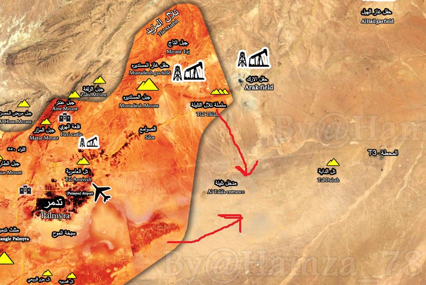 Palmýra. SAA+ získala pohorie Shumriyah Mountains , severne od Palmýry.
