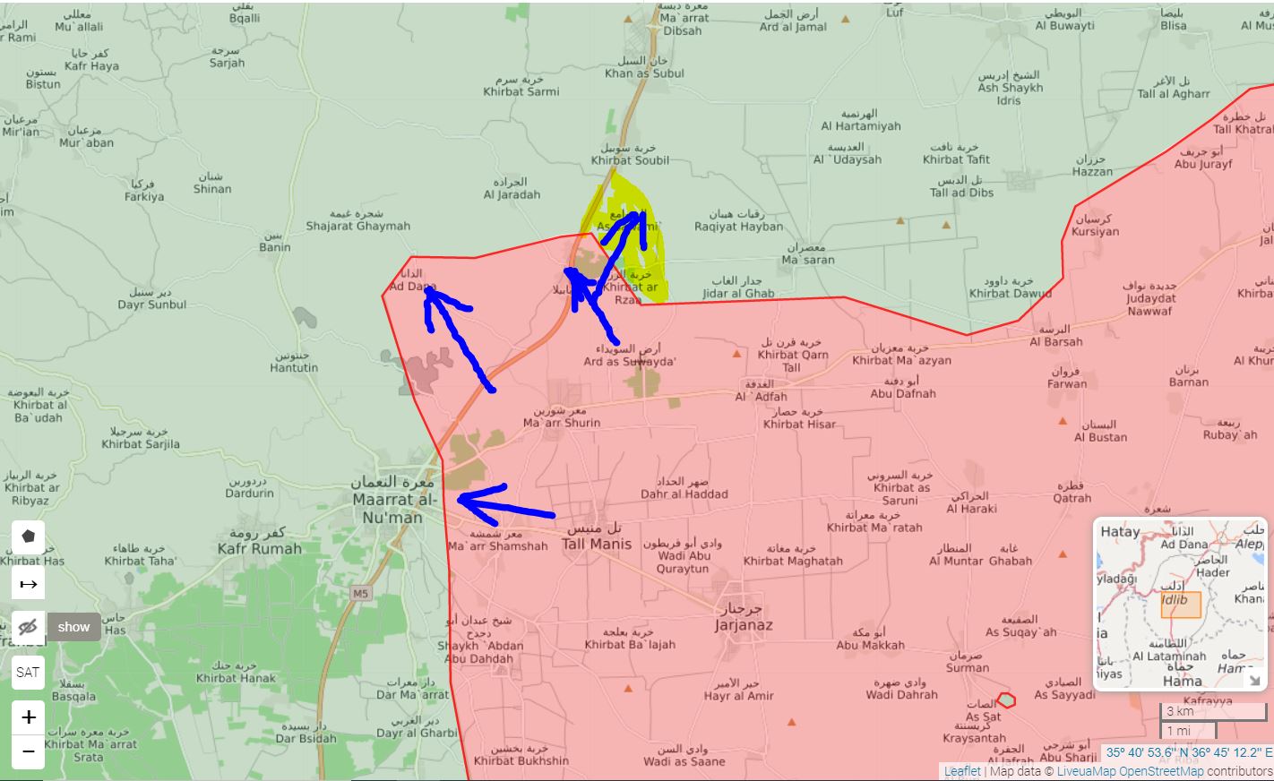 SAA prelomila obranu a obsadila cestu M5 južne od Maarat alNuman, je tam asi aj ďalšie obkľúčenie tureckeho poz. stanovišťa (pri Maar Hattat)