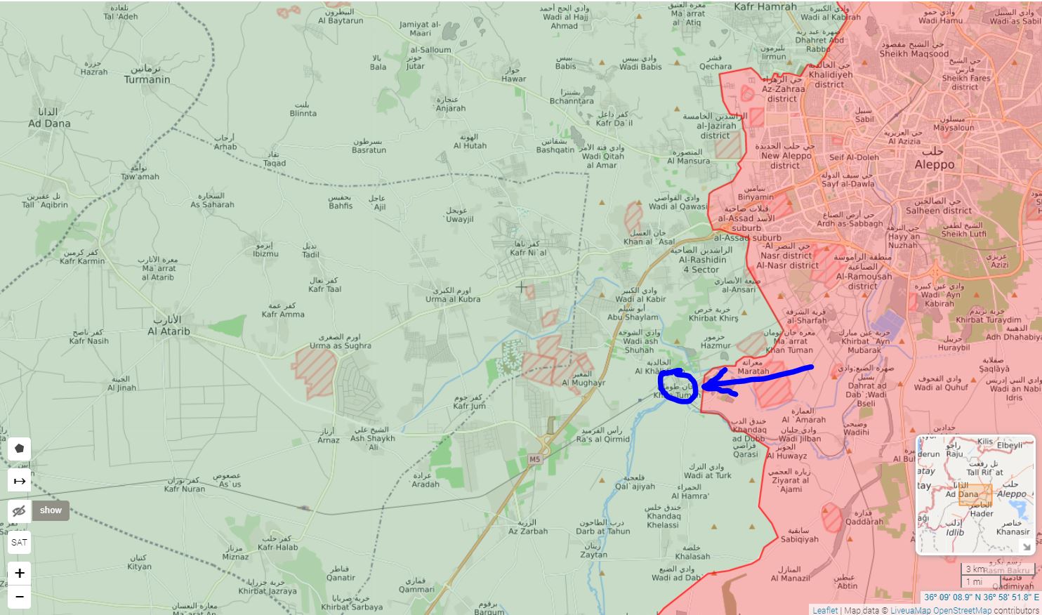 Podľa vojenského zdroja v meste Aleppo sa sýrska arabská armáda podporovaná národnými obrannými silami (NDF) pokúša získať Khan Touman potom, čo si zaistili kopce severovýchodne od tohto mesta.