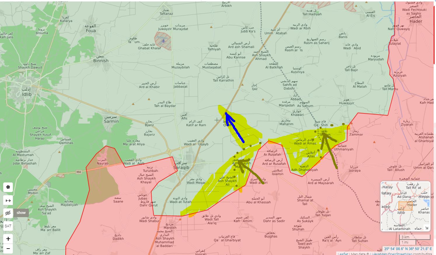 https://www.novinky.cz/zahranicni/blizk ... u-40312457Syrská armáda ve středu vstoupila do města Sarákibu v provincii Idlib, kde se už několik týdnů odehrávají těžké boje, protože se vládní síly pokoušejí dostat pod kontrolu strategickou dálnici M5 spojující Damašek s Aleppem. Exilová organizace SOHR monitorující dění v zemi oznámila, že postupu vojáků předcházelo stažení několika set bojovníků radikálních skupin, jež v Idlibu působí.