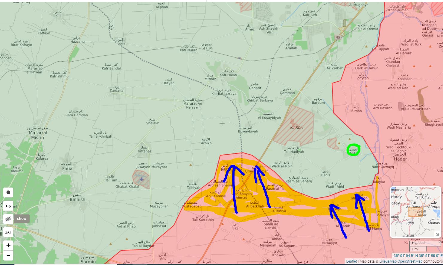 Turecký konvoj se rozmisťuje na vojenské základně v al-Mastumah (na půl cesty mezi Arihah a Idlibem).