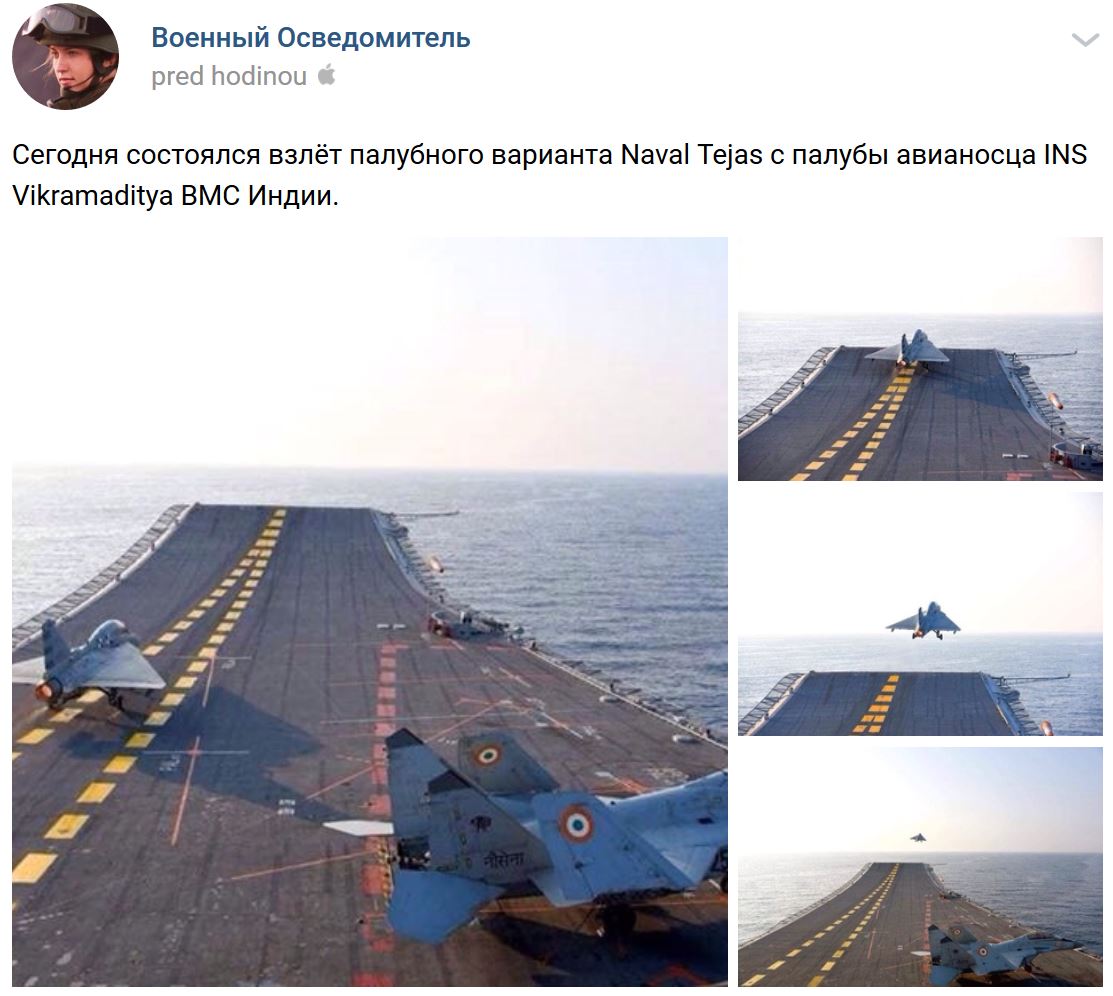 ↑ Prvý štart Tejas z LL INS Vikramaditya