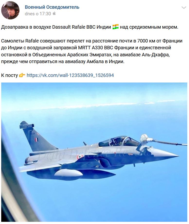 Prelet lietadiel Dassault Rafale z FR do Indie + tanker MRTT A330: