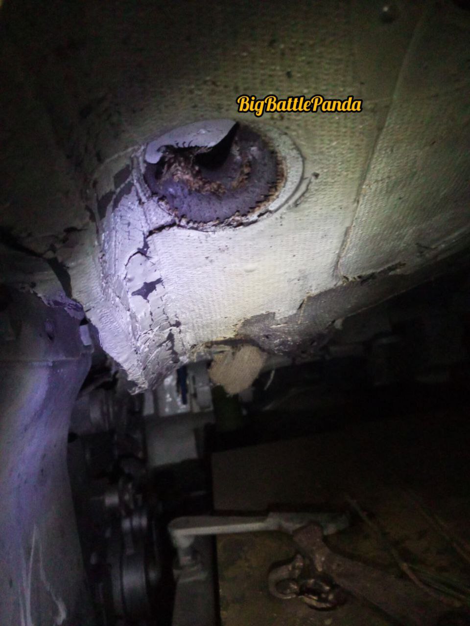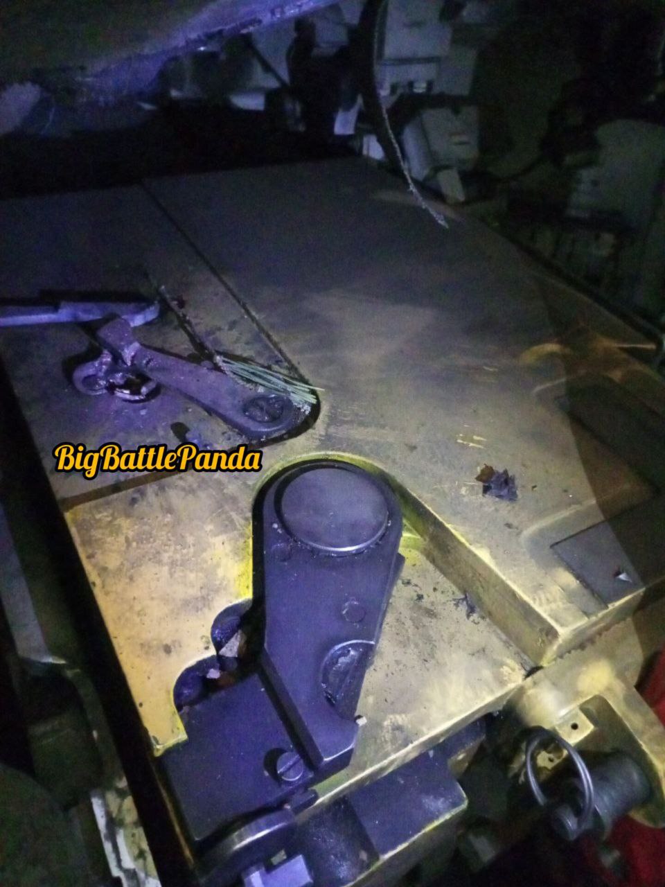 Zásah šel přímo do bloku dynamické ochrany Kontakt-5 na střeše věže, kumulativní střela překonala ochranu, pronikla věží a vletěla do závěru kanonu. Posádka byla jen mírně vyděšená.