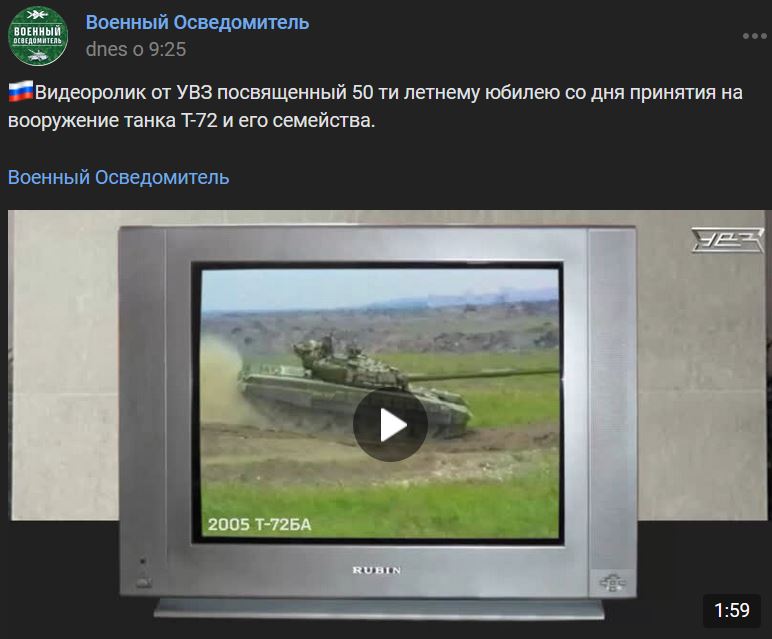 Video od UVZ (УВЗ) venované 50. výročiu prijatia tanku rodiny T-72 do výzbroje.