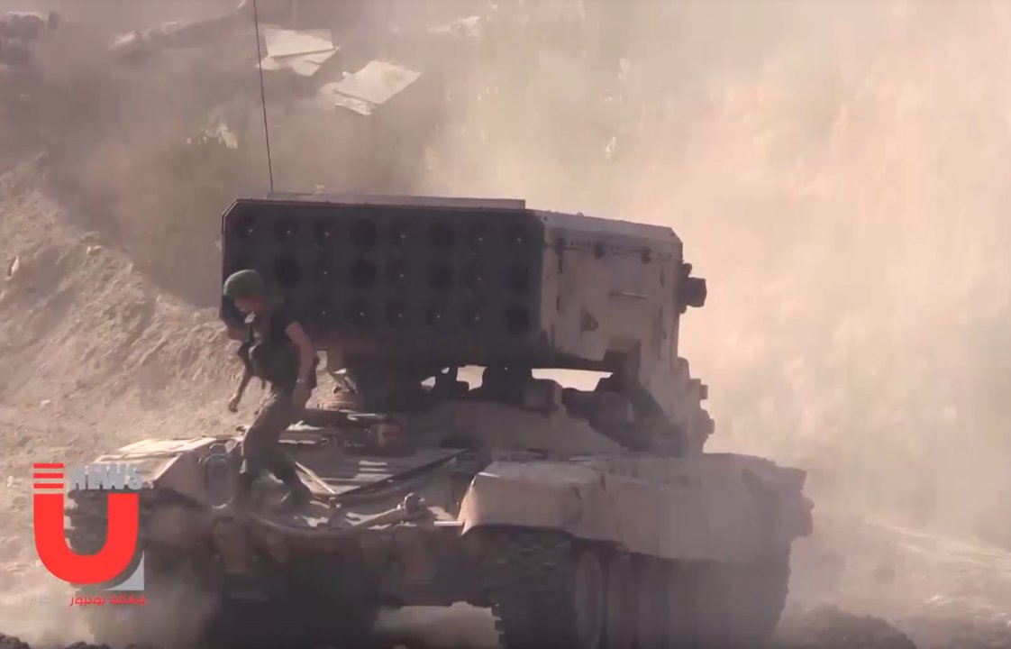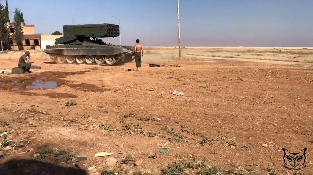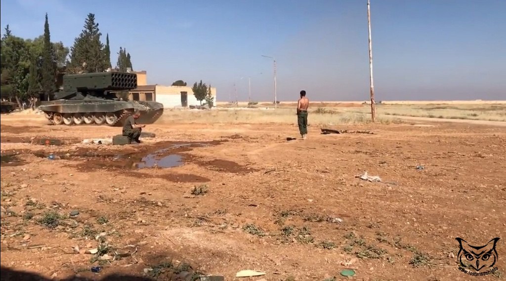 SAA a na ostrůvku Khaidzhat Kati v Deyr Ez Zor. Vypadá to na ruskou posádku TOC-1A "Soltsepek"