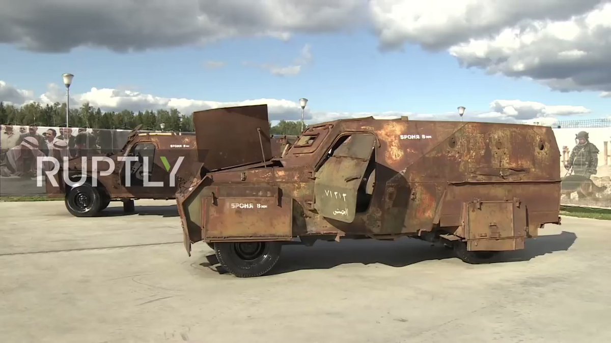 Rusko vystavilo zbrane získané od protivládnych zoskupení v Sýrii - o.i. ISIS troop transport, Jaish Islam's trench digger, a rare Centurion/Sho't tank, IS up-armoured Humvee, UNDOF RG-31 Nyala & Southern Front's OT-64, #TOW|s + APILAS.