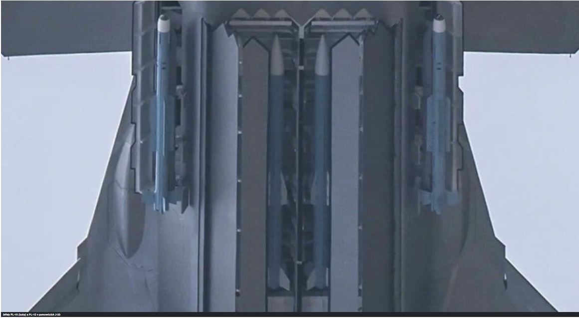 Střely PL-10 (boky) a PL-15 v pumovnicích J-20 Samotná PL-10 je považována za blízkého kandidáta na titul nejschopnější střely vzduch-vzduch s vizuálním dosahem ve službě na celém světě a využívá ovládání vektoru tahu a kardanový zobrazovací infračervený vyhledávač pro usnadnění zaměřování vysoko mimo zaměřovač v úhlech přesahujících 90 stupňů. Silné výhody střely byly široce uznány západními zdroji, přičemž britský Royal United Services Institute poznamenal, že střela měla "lepší kinematický výkon než americký AIM-9X Sidewinder". S dosahem, který je považován za velmi dlouhý pro infračerveně naváděnou střelu, je PL-10 také schopen zaměřovat na nižší než vizuální vzdálenosti. Schopnosti střely jsou obzvláště silné, když jsou spárovány nejen s unikátním odpalovacím systémem J-20, ale také s vlastní avionikou a extrémní manévrovatelností stíhačky. Záběry z konce roku 2022 ukázaly, že letouny J-20 předvádějí stále působivější letové výkony při nízkých rychlostech, přičemž se očekává, že integrace motorů WS-15 s vektorováním tahu očekávaná od konce roku 2024 učiní z této třídy stíhacích letounů těsného uchazeče o titul nejobratnějšího letounu na světě. WS-15 byl oznámen v březnu, kdy vstoupil do sériové výroby a poprvé vzlétl ve dvojčatech na J-20 koncem června.