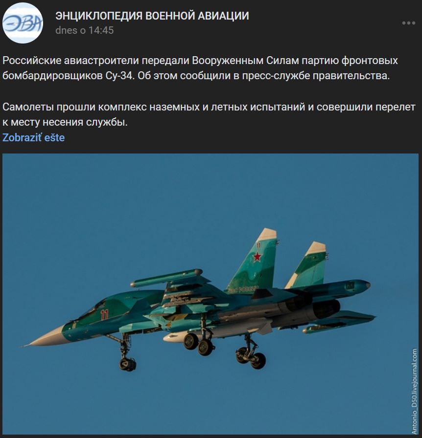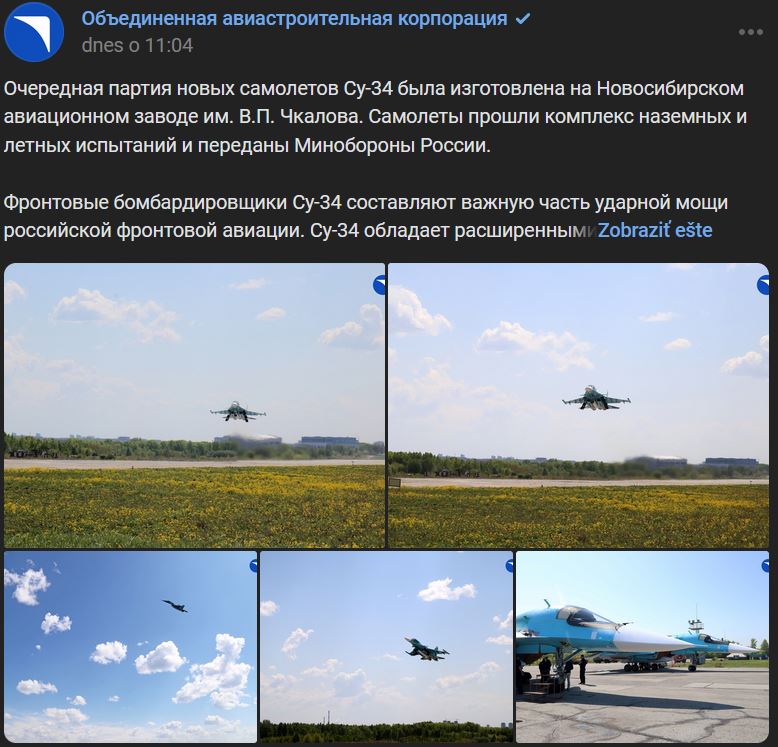 Výrobca lietadiel Suchoj Su-34 (Су-34) VKS odovzdal nové lietadlá (oficiálne počet neuviedli, blogeri predpokladajú 4-6ks)