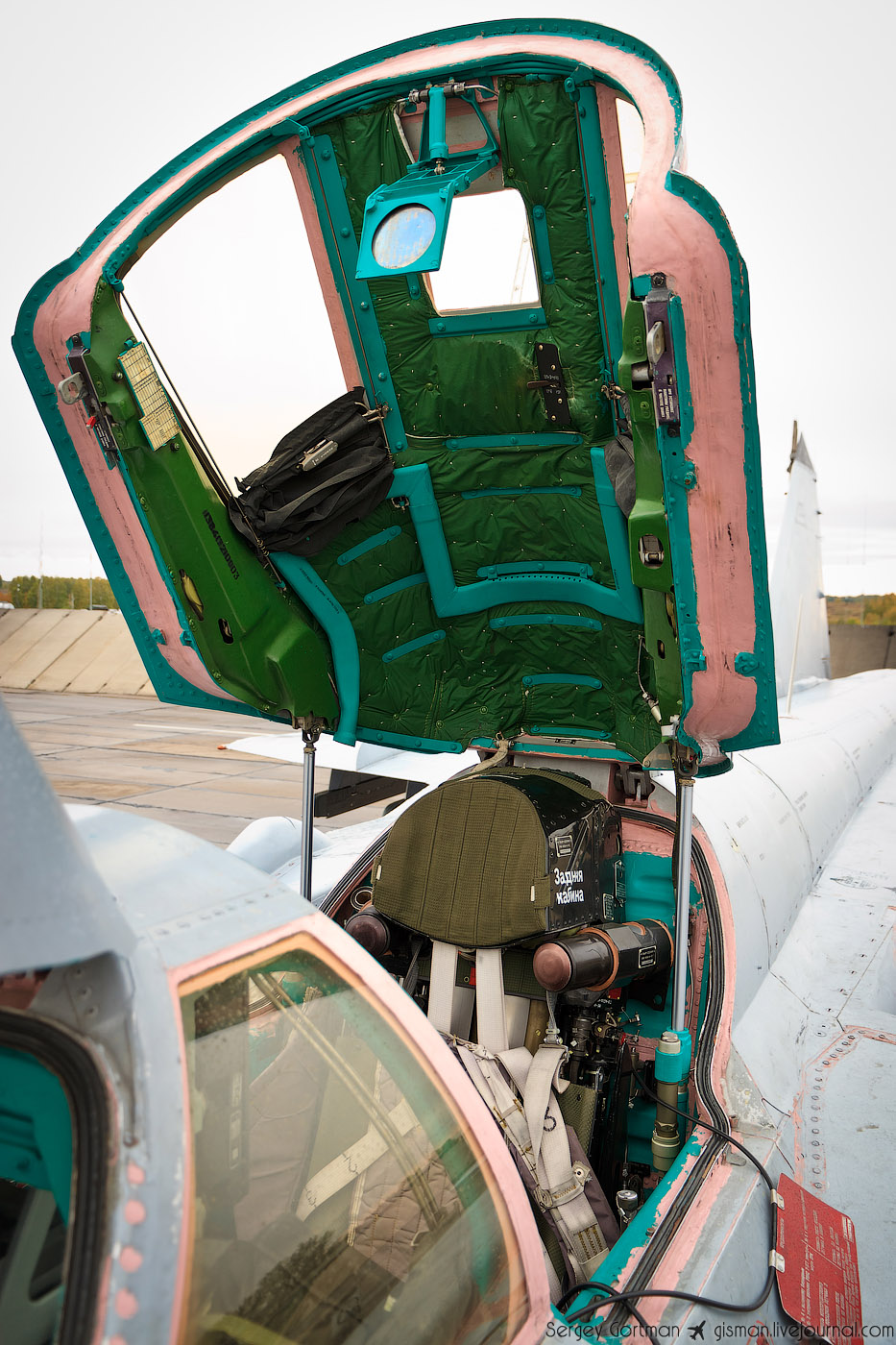 в задней кабине установлен выдвижной перископ обзора передней полусферы, предназначенный для улучшения обзора с кресла штурмана на взлете и посадке (на МиГ-31M и более поздних модификациях перископ не устанавливается)