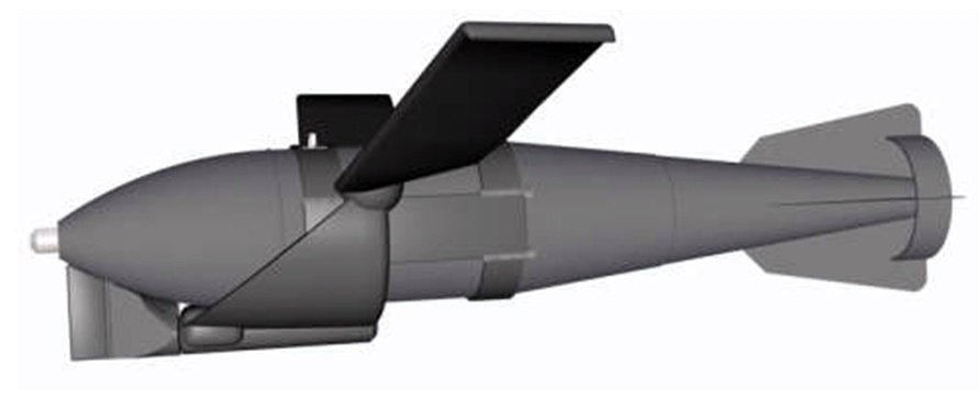 ke které připojili modul, který ji změní na klouzavou bombu s omezenou možností řiditelnosti - spíše korekce letu.