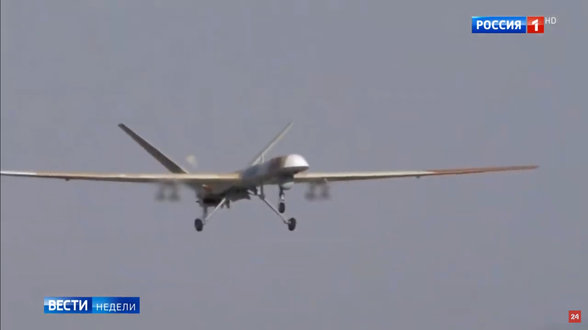 :sipka: Orion/y v Sýrii na experimentálním bojovém nasazení neoperují z Hmímimu, ale vzlétá na záběru z letecké základny T4 (jdou tam vidět po letišti odstavené staré syrské MiGy-25)