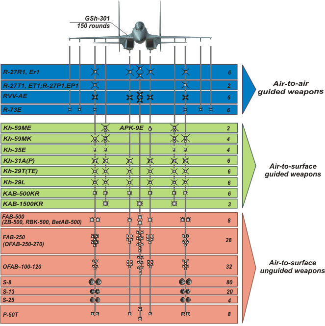 Ad Venezuela - Suchoj Su-30MK2, schéma výzbroje: