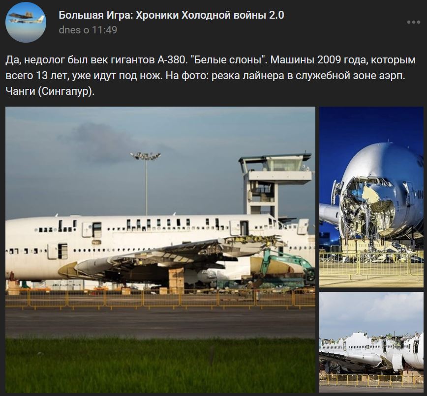 Áno, éra gigantov A-380 trvala krátko. "Biele slony. Mašiny z roku 2009, ktoré majú len 13 rokov, už idú pod nôž. Na snímke rezanie lietadla v servisnej zóne na letisku Changi v Singapure.