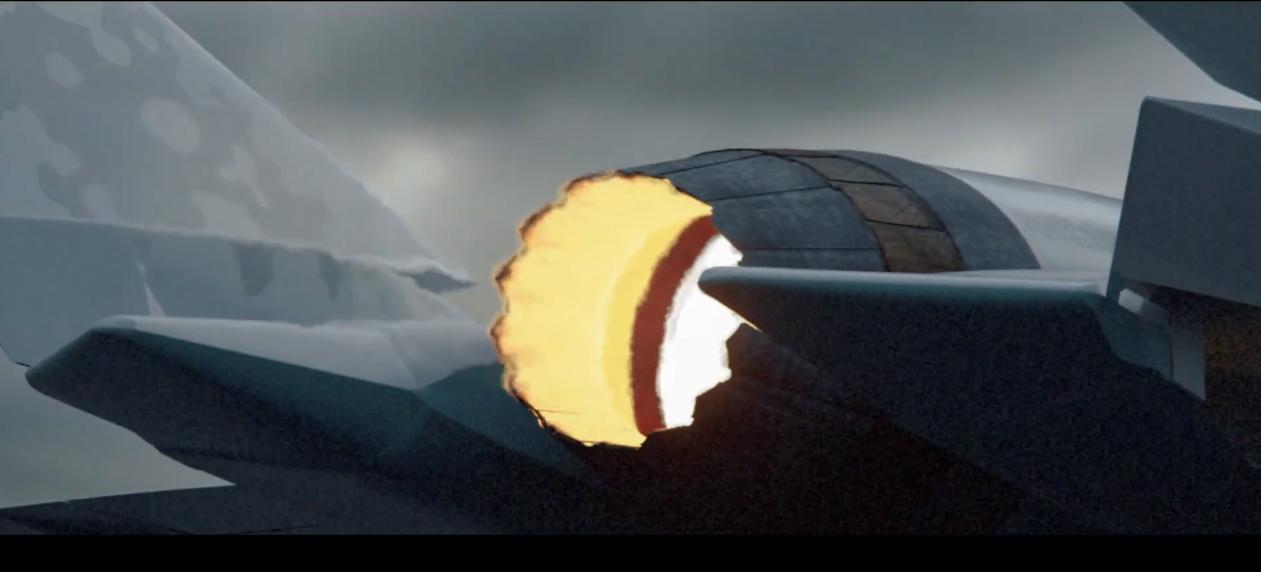 Jinak to vedle trysky po obou stranách jsou nejspíš rozeviratelné brzdné štíty, i to by mohlo sloužit částečně jako náhrada výškovek (třeba jen v případě nouze a vypadnutí vektorování při jinak fungujícím motoru?), tah motoru se nedá plně vychylovat do boků, vertikálně žádný limit není.