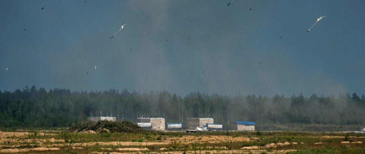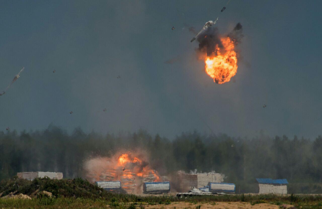úder dvojice Su-34 pomocu 2x 4 OFAB-500ŠR na cvičné postavenie
