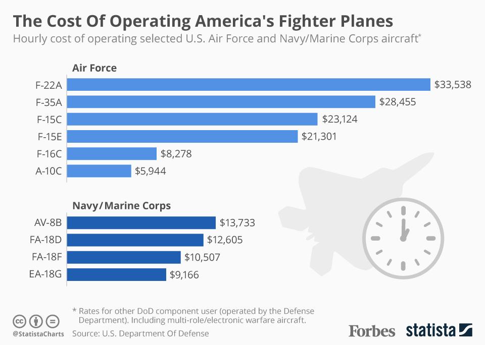 Ceny za 1 letovú hodinu podľa ministerstva obrany USA podľa lietadiel: