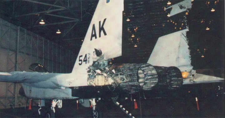 Dňa 19.03.1990 na cvičení USAF "Arctic Cover" cca 150 míľ západne od Anchorage jedno lietadlo rodiny F-15 mal "nesprávne" nastavený bojový vs cvičný režim (alebo nesprávne podvesenú raketu) a pri výcviku vzdušného boja "omylom" z F-15 na inú F-15 vypálil A-A raketu krátkeho dosahu AIM-9M. Hneď ako si pilot uvedomil že AIM-9M letí toho druhého vopred varoval. Úhybné manévre, raketa zasiahla zadnú časť stroja, pilot s poškodenou mašinou pristál na letisku. Pilotovi sa nič nestalo, škoda na lietadle 992058 $.