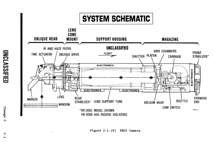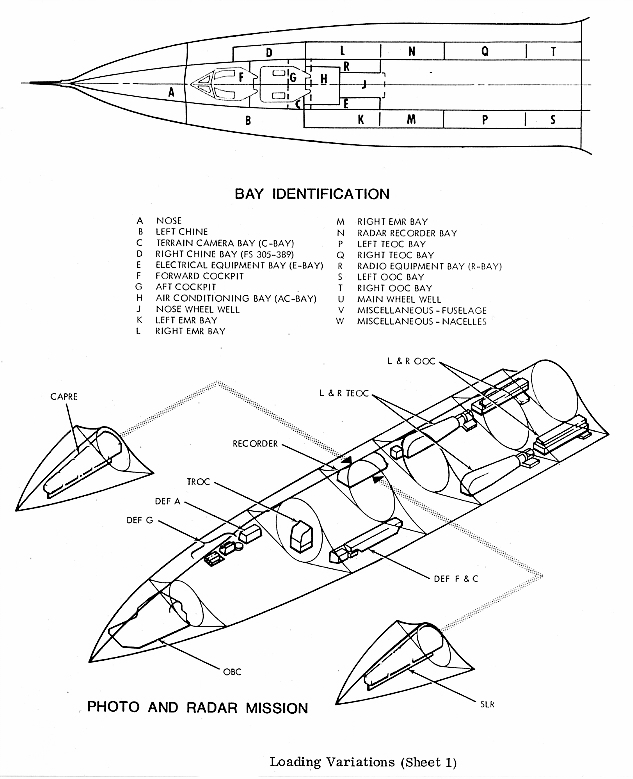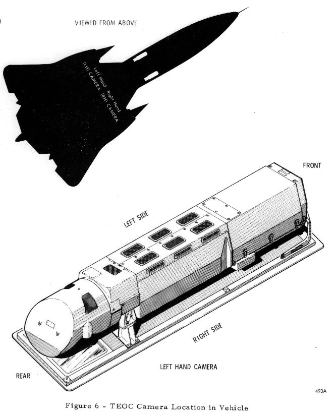 V šachtách na obou stranách rozšířené části trupu byly dvě kamery TEOC (Technical Objective Camera)... I ty musely mít průhledný překryt... Byly tam i přijímače, jejíž úkolem bylo zaznamenávání signálů nepřátelských radiolokátorů a jejich nahrávání na magnetickou pásku... Těm zřejmě stačil ten překryt TEOC...