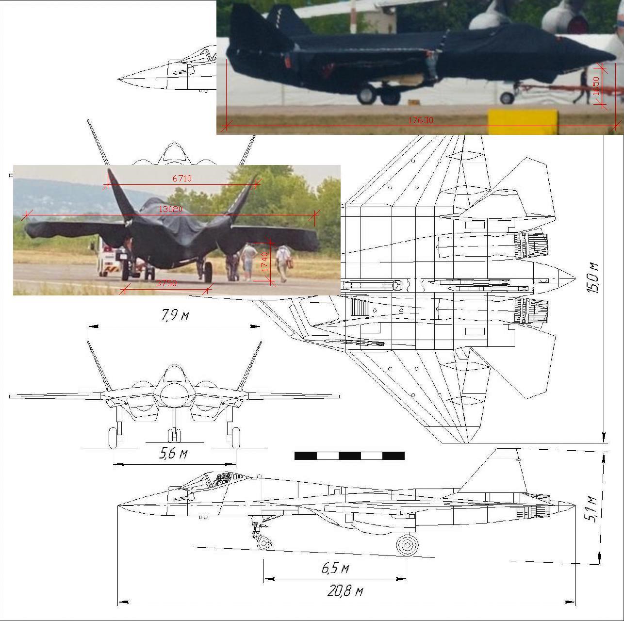 Dva zdroje s výpočty rozměrů a porovnání s Su-57 Premenované na vyžiadanie zakladateľa