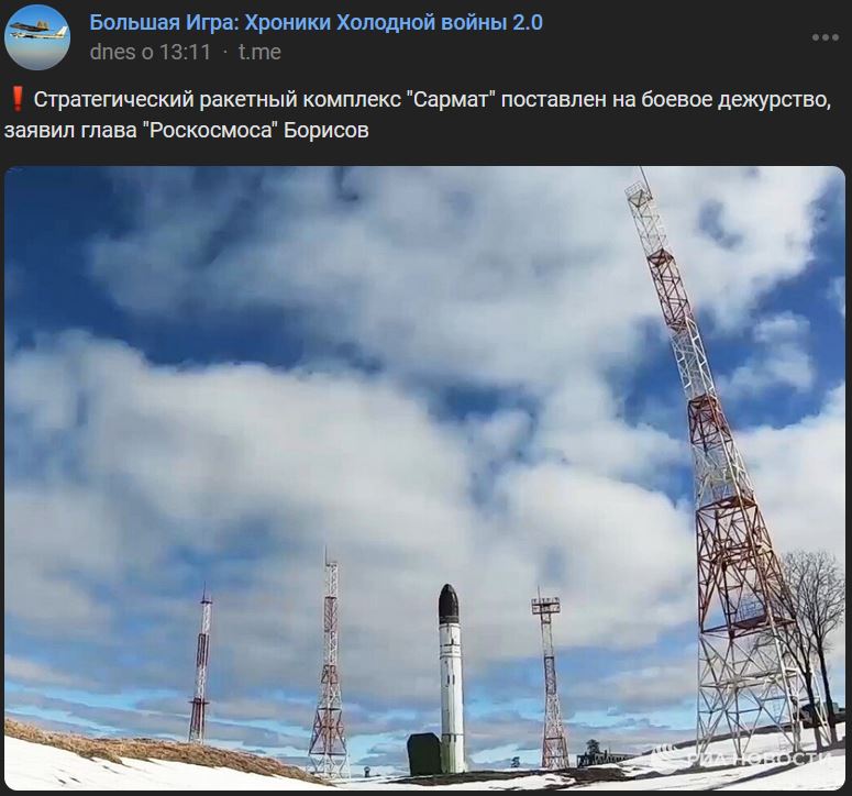 Strategický raketový komplex "Sarmat" (Сармат) bol zaradený do bojovej služby, povedal šéf Roskosmos (Роскосмос) Borisov (Борисов)