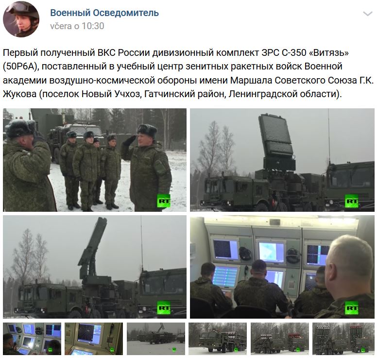 Prvý komplex PVO systému S-350 Vitjaz (С-350 Витязь), označenie 50R6A (50Р6А) dislokovaný vo výcvikovom centre Akadémie leteckej obrany v Leningradskej oblasti, Gatčinskij rajón, obec Novyj Učchoz (Новый Учхоз) Zdroj https://vk.com/wall-123538639_1351144 z 27.02.2020 + viac foto