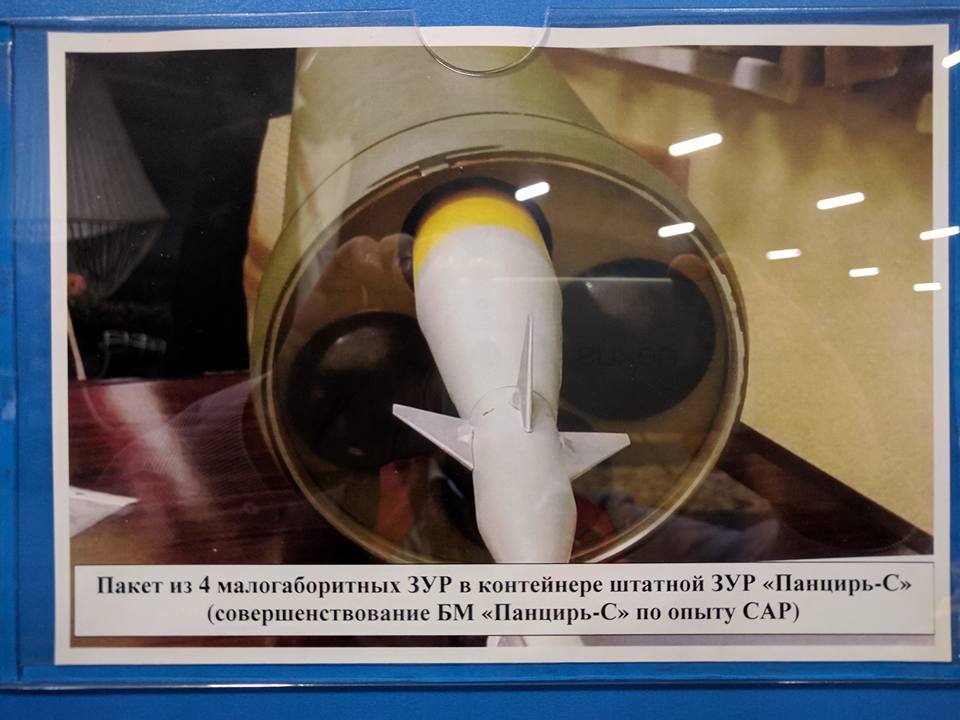 Prvý prototyp Pantsir SM + nová malokaliborá raketa s krátkym dosahom, do štandartného kontajnera sa zmestia 4 to znamená že jedna bojová jednotka može mať až 48 rakiet pripravených k použití.