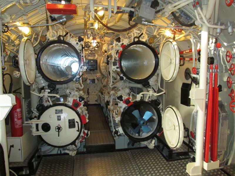 Příďové torpédomety, celkem 6ks, další dva pod stávající podlahou, záďové tatořada neměla