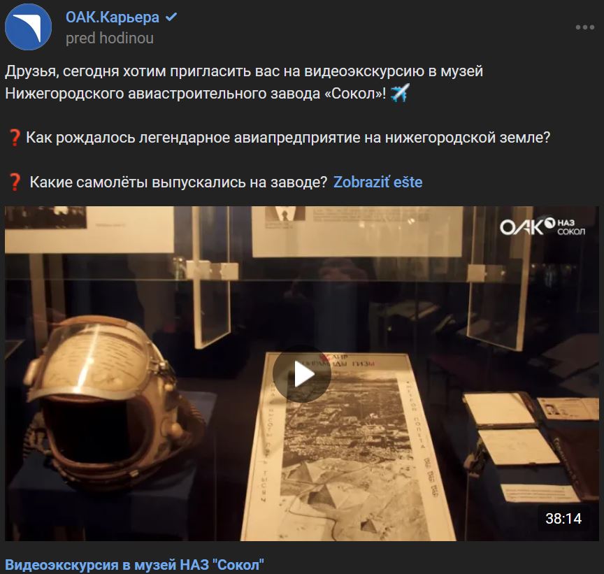 Videoprehliadka múzea leteckého závodu Sokol (Сокол) v Nižnom Novgorode