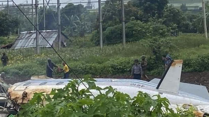 Trosky vojenského lietadla, ktoré sa zrútilo 10. júna neďaleko druhého najväčšieho mjanmarského mesta Mandalaj. https://spravy.pravda.sk/svet/clanok/59 ... -12-obeti/