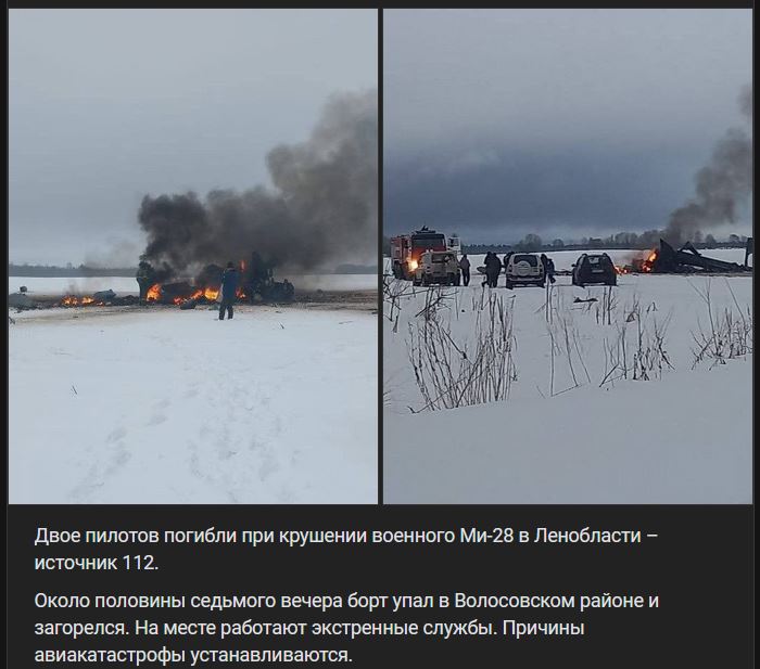 Utorok 18.03.2025, Rusko, Leningradská oblasť cca 18:30 hod. miestneho času, katastrofa vrtuľníka rodiny Miľ Mi-28 (Ми-28), podľa ASN Miľ Mi-28NM vo Volosovkskom rajóne (Волосовском районе), obaja piloti zahynuli