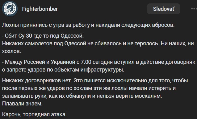 Žiadne lietadlá pri Odese neboli zostrelené ani stratené. Ani naše, ani chochlov.