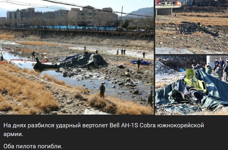 Pondelok 09.02.2026 cca 11:04 hod miestneho času, katastrofa vrtuľníka Bell AH-1S Cobra armády Kórejskej republiky počas cvičného letu v blízkosti mosta Sinha v Hyeon-ri, Jojong-myeon, Gapyeong, Gyeonggi.