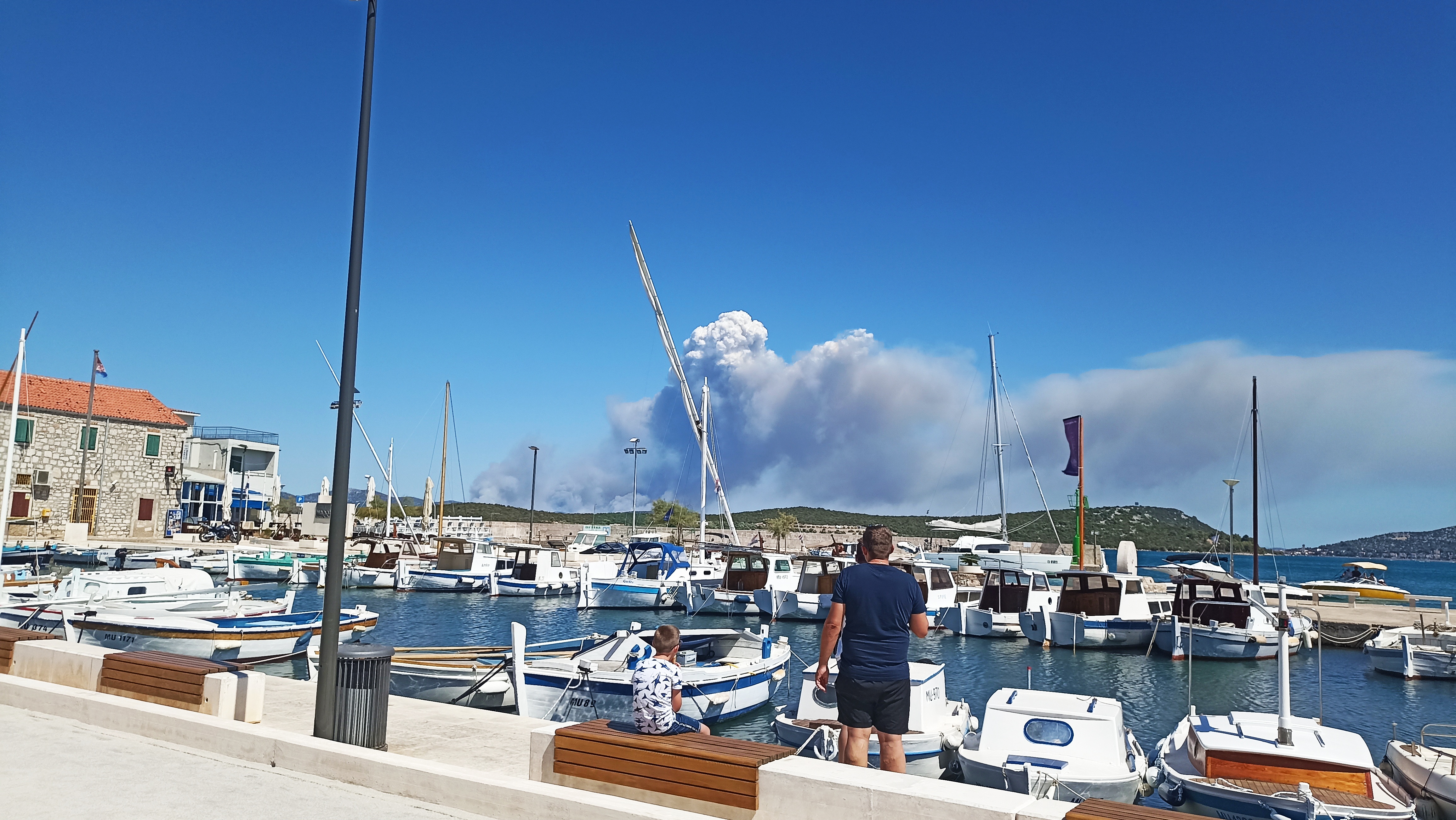 Požár vypukl dnes před polednem u archeologického naleziště Velika Mrdakovica, odkud se rychle rozšířil lesním porostem k obcím Zaton a Raslina. Z obou turisty oblíbených letovisek musejí být lidé odváženi na člunech přes Šibenický záliv, respektive Prokljanské jezero v ústí řeky Krky.