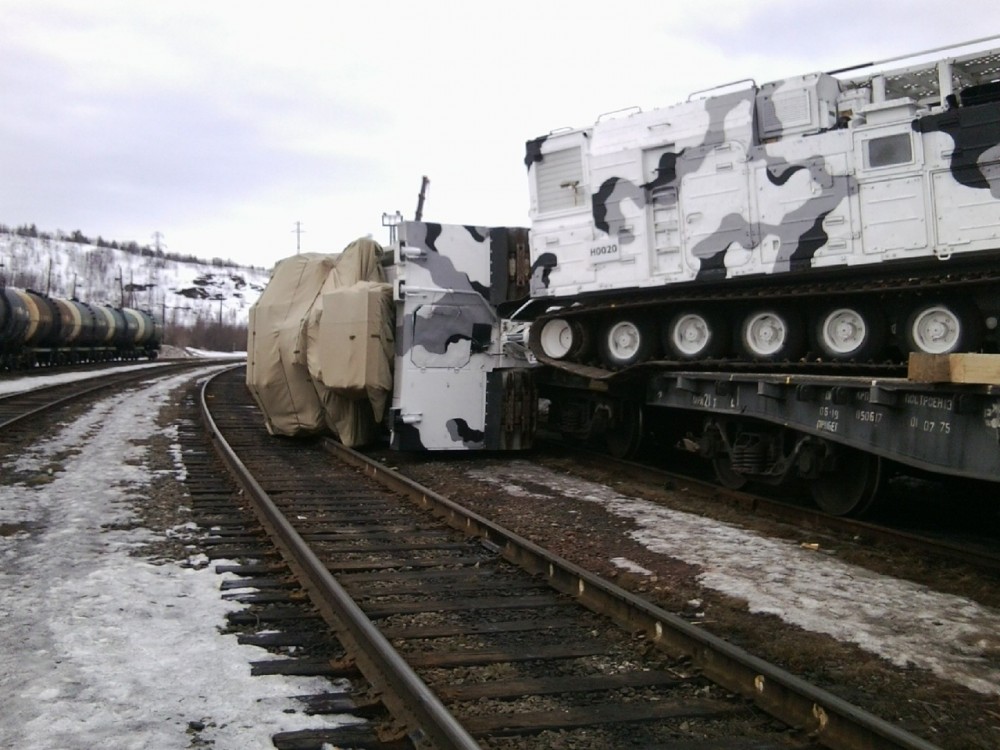 Ten PVO systém Pancir s vysokým ťažiskom má smolu - nedávno sa v zákrute "vysypal" na podvozku Kamaz, teraz sa z vagóna "vysypal" aj na pásovom podvozku DT-30 - niekto zarobil ...