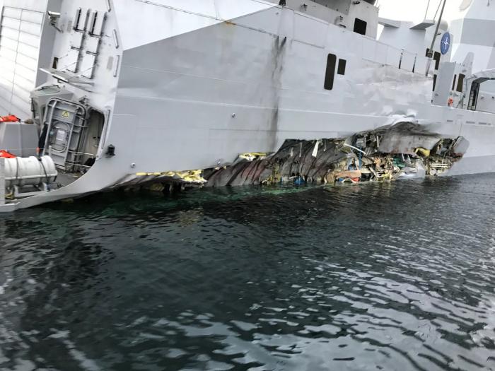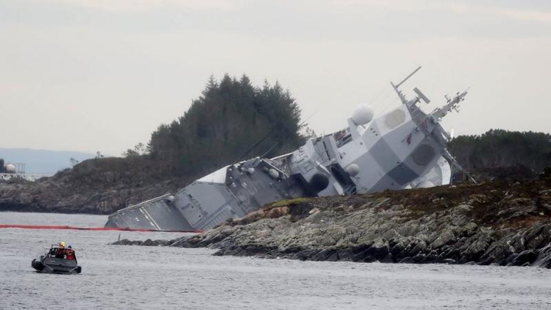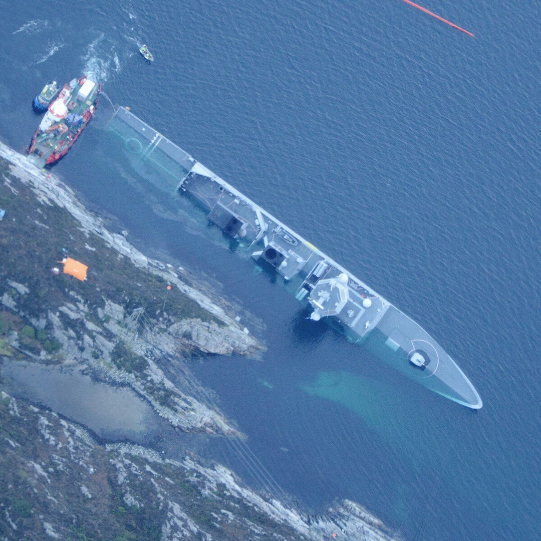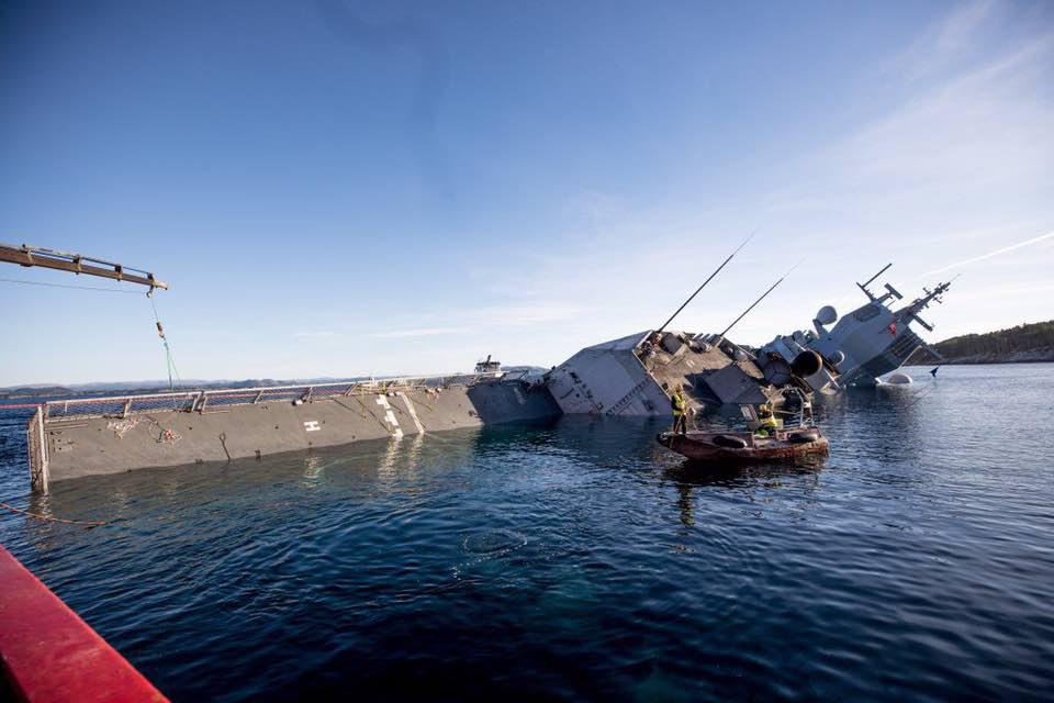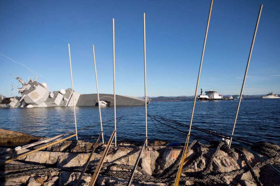 Nové fotky částečně ponořené fregaty KNM Helge Ingstad z norského námořnicta