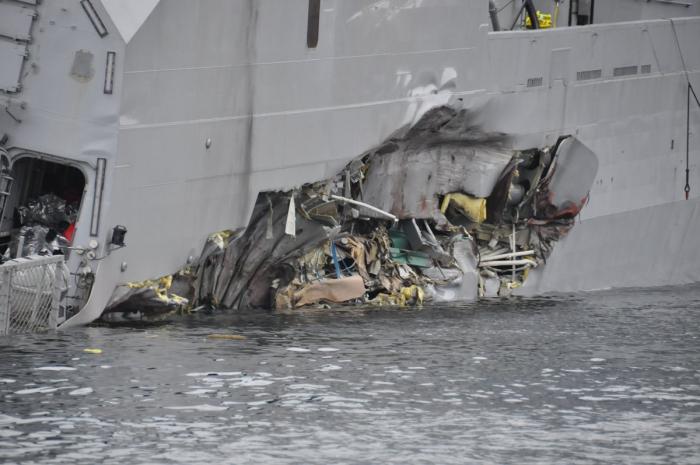 Predsa by sa mali sledovať aj obrazovky ale aj pozerať z okna a počúvať hlásenia v rádiu, to tam nebol lodivod? A úhybné manévry má robiť menšia loď ak je to nutné. Vojenská by mala byť obratnejšia.