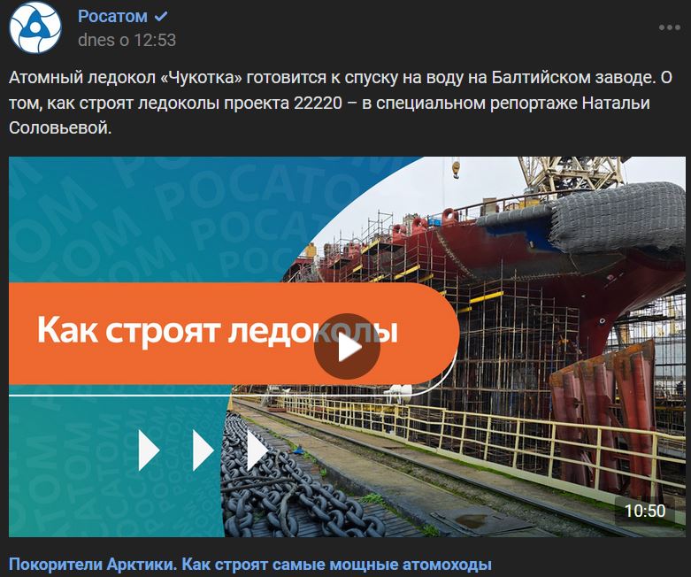 Pri príležitosti vyplávania na prvú plavbu "Baltijskij zavod" (Балтийский завод) (súčasť OSK) sumarizuje stavbu A-ľadoborca Ural (Урал) a zdieľa s vami tento krátky film, ktorý rozpráva o námorných skúškach.