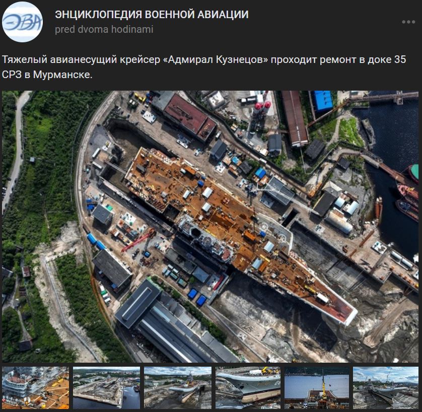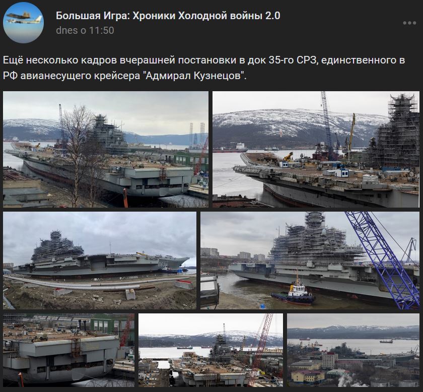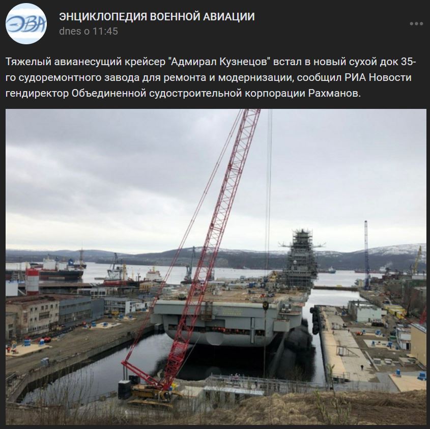 Ťažký lietadlový krížnik Admirál Kuznecov (Адмирал Кузнецов) vstúpil do nového suchého doku v 35. lodenici na opravu a modernizáciu, uviedol pre RIA Novosti generálny riaditeľ Zjednotenej lodiarskej korporácie Rachmanov (Рахманов).