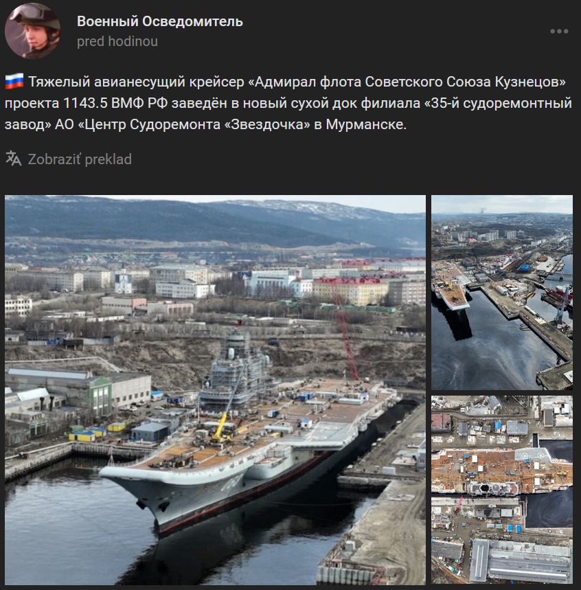 Súčasný stav ťažkého lietadlového krížnika "Admiral flota Sovetskogo Sojuza Kuznecov" (Адмирал флота Советского Союза Кузнецов)