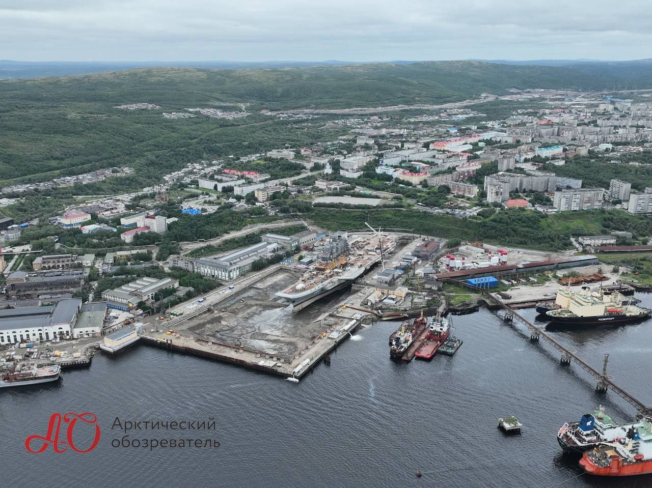 Ťažký lietadlový krížnik "Admirál Kuznecov" (Адмирал Кузнецов) (projekt 1143.5) v doku, Murmansk (Мурманск), utorok 31.05.2022. (foto: O. Filonok/О. Филонок)