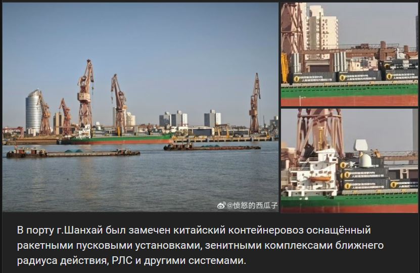 V prístave pri meste Šanghaj bol zaznamenaný čínsky kontajnerový lodný transport vybavený raketovými odpaľovacími zariadeniami, protivzdušnými komplexmi krátkeho dosahu, radarmi a inými systémami.