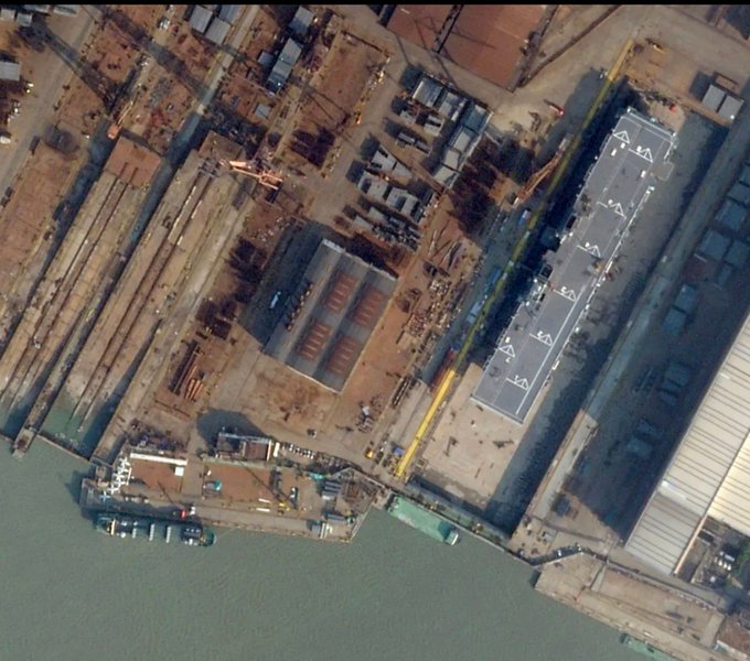 ⬆️Tak dnes byla po dlouhé době zveřejněna nějaká lepší fotografie trupu, který se staví v Ta-lienu a už je prakticky potvrzeno, že se jedná o nukleární palubní nosič třídy Type 004.