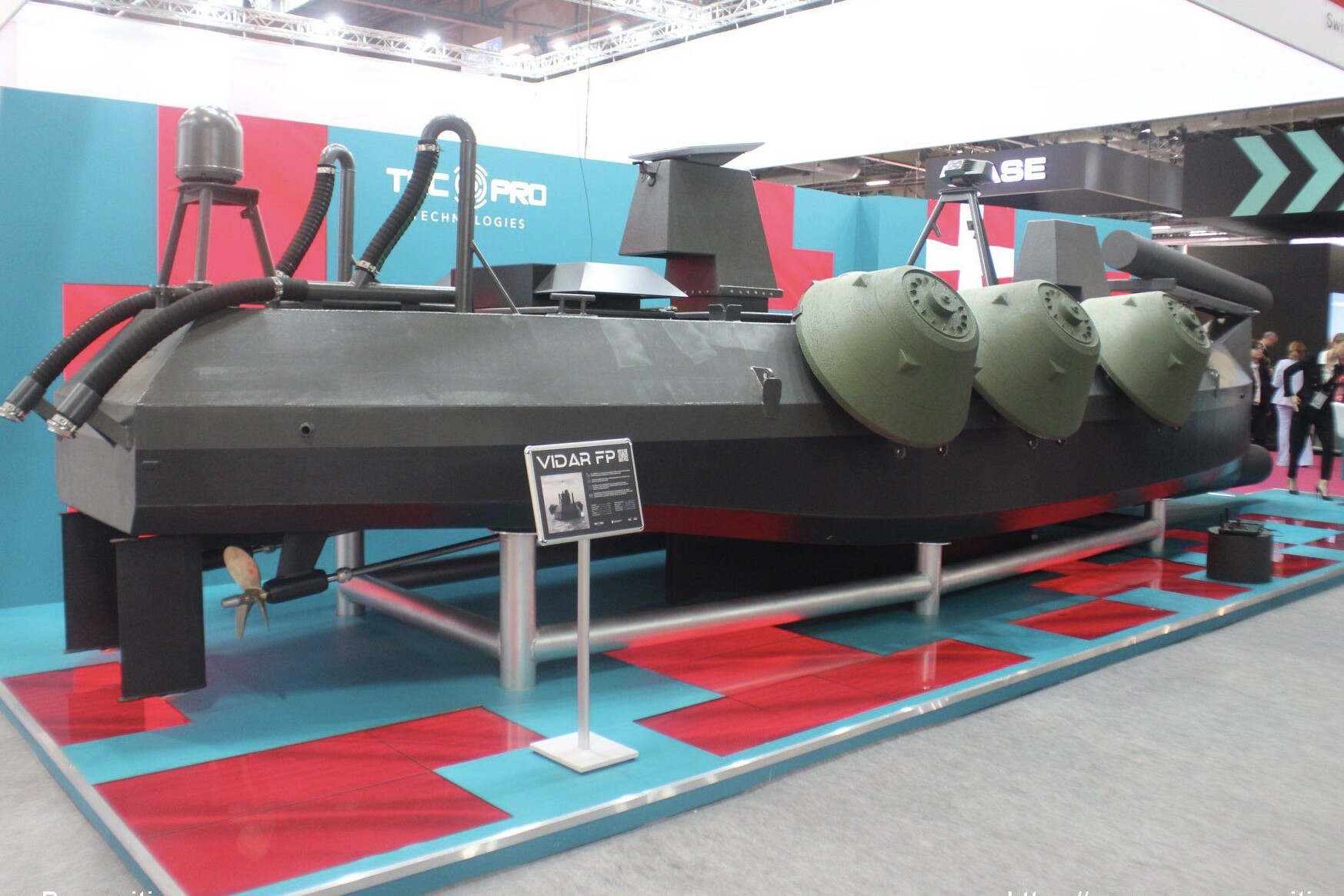 https://t.me/wargonzo/20890Na výstavě vojenské techniky Eurosatory-2024 nedaleko Paříže vzbudil mezi vojenskými odborníky velkou pozornost nový námořní dron Vidar FP pro NATO. Tento dron může dosáhnout rychlosti 16 km/h, urazit 2000 mil, nést šest min a dvě torpéda. Je vybaven termovizními a optickými kamerami, radarovými protiopatřeními, komunikačními systémy včetně Starlinku, má všitý systém umělé inteligence, vlastní dron s vertikálním vzletem a mnoho dalšího.